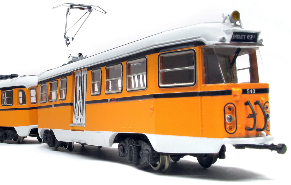 Il modello è progettato a computer partendo da disegni originali e numerose fotografie di riscontro, disegnato in 3D, depositato in prototipazione rapida e replicato successivamente in resina di alta qualità. Completano il modello alcuni elementi in fusione di metallo e fotoincisione. Principali caratteristiche tecniche: cassa, telaio e carrelli realizzati in resina, dettagli in fotoincisione di alpacca, vetri dei finestrini in plexiglass tagliato al laser, assi in metallo, ganci magnetici. La versione motorizzata è dotata di luci bianche/rosse secondo il senso di marcia.