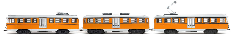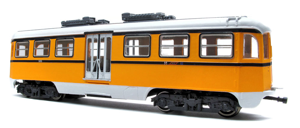 Il modello è progettato a computer partendo da disegni originali e numerose fotografie di riscontro, disegnato in 3D, depositato in prototipazione rapida e replicato successivamente in resina di alta qualità. Completano il modello alcuni elementi in fusione di metallo e fotoincisione. Principali caratteristiche tecniche: cassa, telaio e carrelli realizzati in resina, dettagli in fotoincisione di alpacca, vetri dei finestrini in plexiglass tagliato al laser, assi in metallo, ganci magnetici. La versione motorizzata è dotata di luci bianche/rosse secondo il senso di marcia.